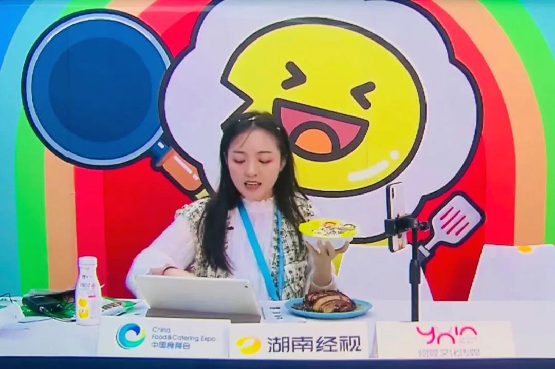 (湖南經(jīng)視的直播間主播正在吃聰廚的扣肉)