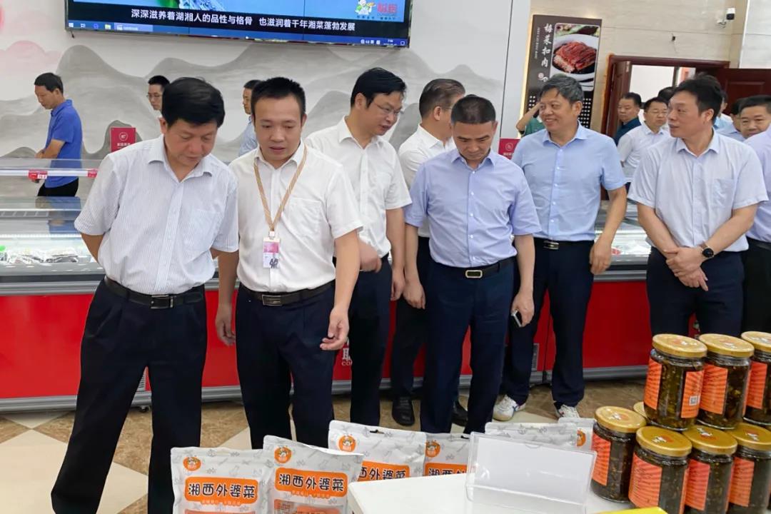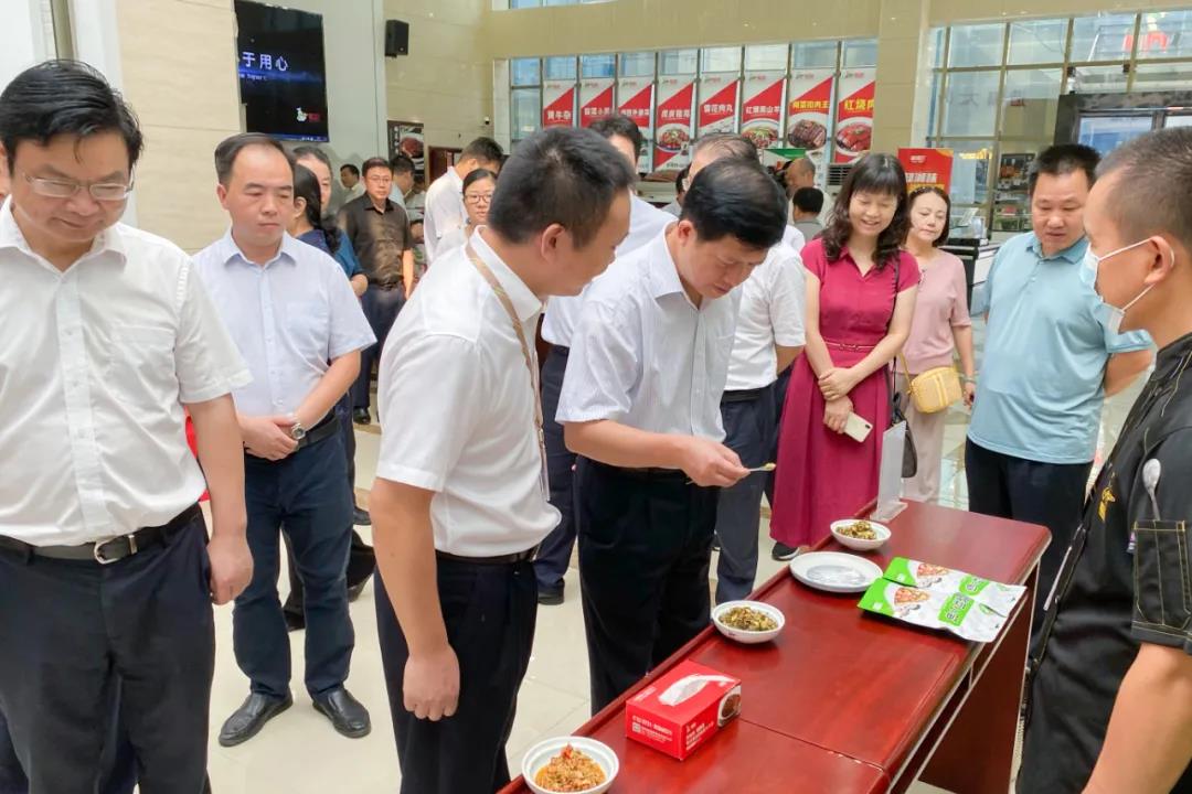 在聰廚產(chǎn)品展示館,張鵬飛介紹了聰廚在農(nóng)副產(chǎn)品合作、產(chǎn)品原材料本地化、農(nóng)產(chǎn)品加工、產(chǎn)銷對接等情況;詳細(xì)介紹了聰廚蔬菜項(xiàng)目部的相關(guān)產(chǎn)品:傳統(tǒng)經(jīng)典菜肴-湘西外婆菜、休閑食品-佐餐系列產(chǎn)品,聰廚蔬菜生產(chǎn)基地生產(chǎn)出的無沙梅干菜,與農(nóng)民合作的農(nóng)副產(chǎn)品以及正在壇制的卜豆角、酸菜等蔬菜制品;并邀請湖南省農(nóng)村農(nóng)業(yè)廳廳長袁延文一行領(lǐng)導(dǎo)品嘗了聰廚鮮香下飯的剁椒蘿卜、老壇下飯菜、酸菜小筍等休閑產(chǎn)品。
