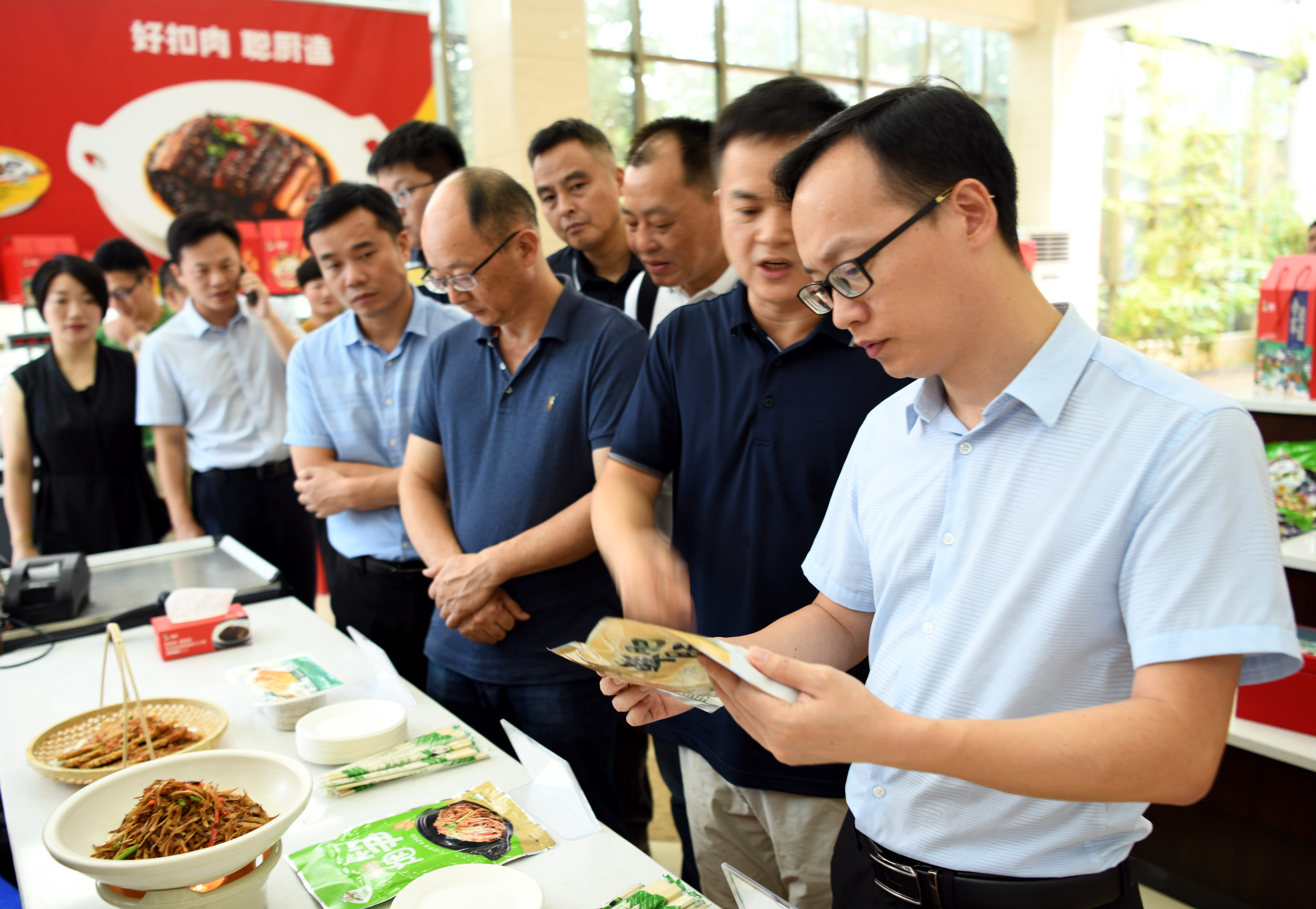 作為湘贛邊農(nóng)業(yè)產(chǎn)業(yè)化龍頭企業(yè),聰廚一直注重企業(yè)的高質(zhì)量發(fā)展,在簽約儀式正式開始之前,唐步聰董事長帶領(lǐng)江西萬載客人參觀了聰廚生產(chǎn)車間。